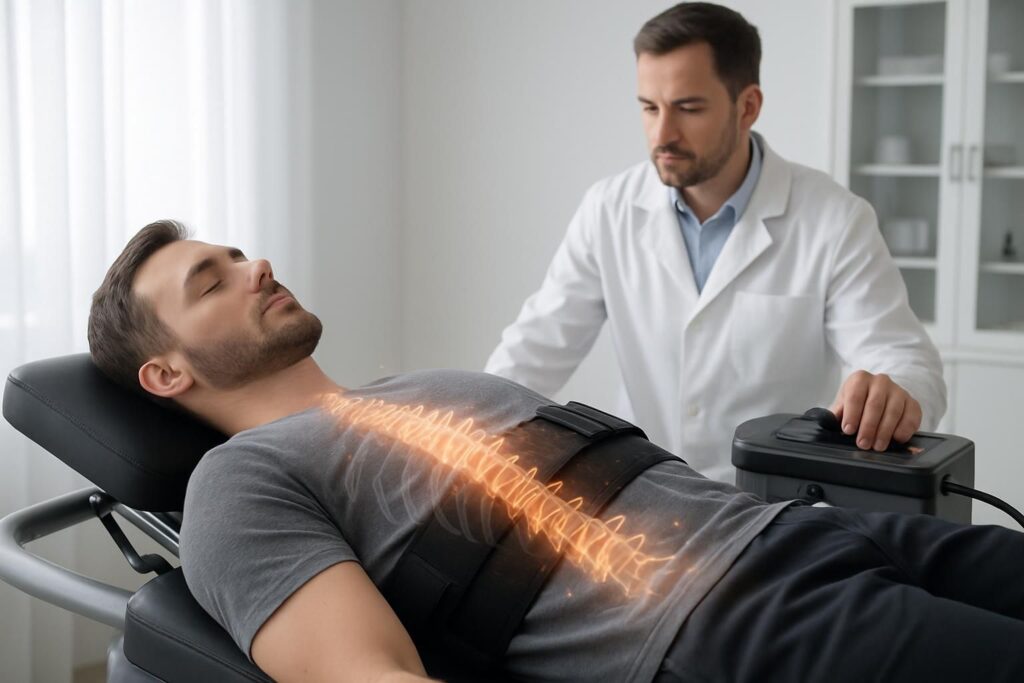 En créant plus d’espace entre les vertèbres, elle diminue la pression exercée sur les nerfs, ce qui peut atténuer la douleur et améliorer la fonction nerveuse.